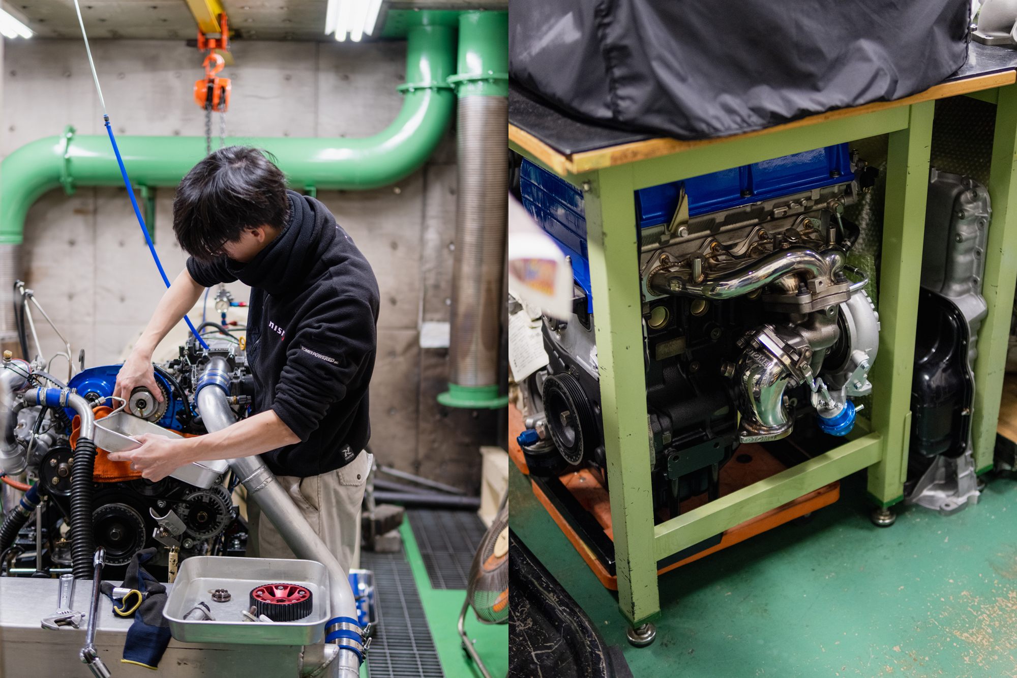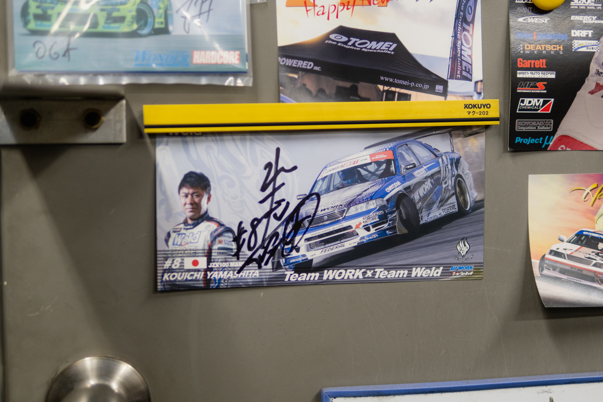 During my tour, I was amazed to see rows of blue valve cover complete engines and to witness the precision and attention to detail in everything they manufacture. It was surreal to know that many of the staff members had worked on some of Tomei’s most iconic cars, such as the Tomei x JIC D1 S15 and the drag R34. The workshop was filled with signed memorabilia from legendary drivers, including Yamashita-san, Kuniaki-san, and, of course, Nomuken.