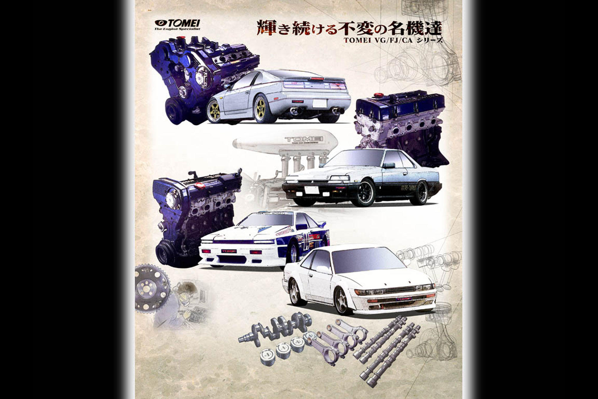 The 2000s saw a surge in engine tuning for both street and race cars, propelling Tomei to global recognition. Leveraging their extensive knowledge and experience, they became one of the top engine specialists in the world, particularly for Japanese engines like the SR, CA, RB, VG, ,4G, 1J, and 2J. Their product range spans from exhaust manifolds and camshafts to conrods and complete engines.