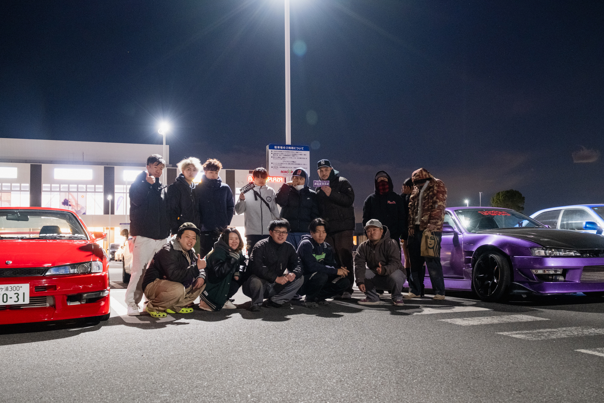 We headed to K’s Denki with some of the crew to hang out and wait for the others to arrive. Rugged up and stocked up on hot cans of MAX COFFEE, I thought I was ready for whatever temperature the night had in store. As everyone started arriving, the temperature dropped to 3 degrees. My partner Steph tried to hang out as long as possible but eventually ended up back in the car with the heater on full blast. Despite the cold, it was so good to be with everyone that I had to stick around.