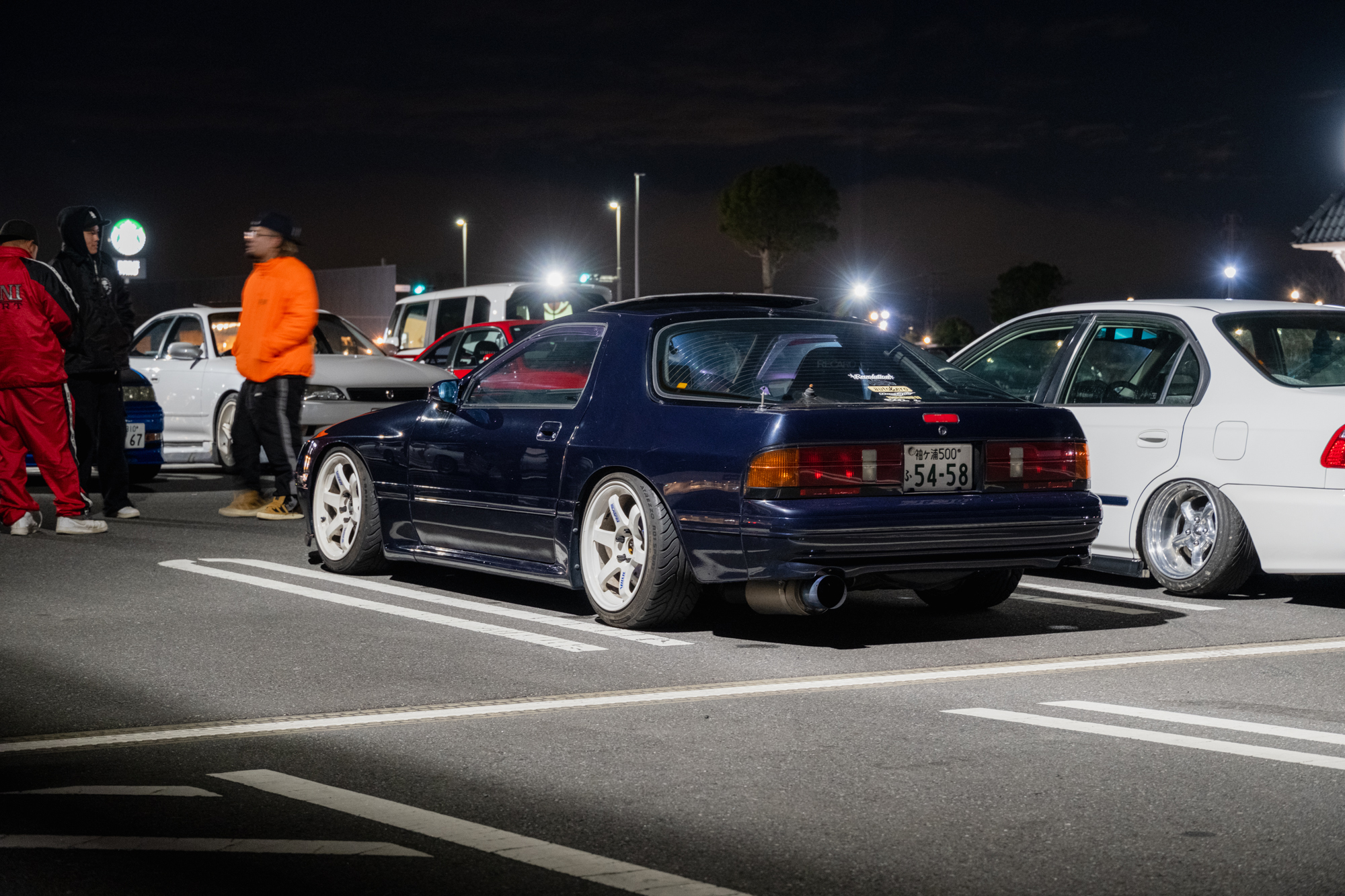 Car after car rolled in—FC RX-7s, Type X 180SXs, Civics, and more. That night, I met a longtime internet friend named Hideto , who was kind enough to take us to his house, just five minutes away, to show me his JZX110 Mark II. It wasn’t running at the time, and it was pitch black, but I still managed to snap a few photos. Hideto and I share a love for Yokohama Advan wheels, so he also showed me his collection. I’m sure we’ve bid against each other on Yahoo Auctions at some point—haha!