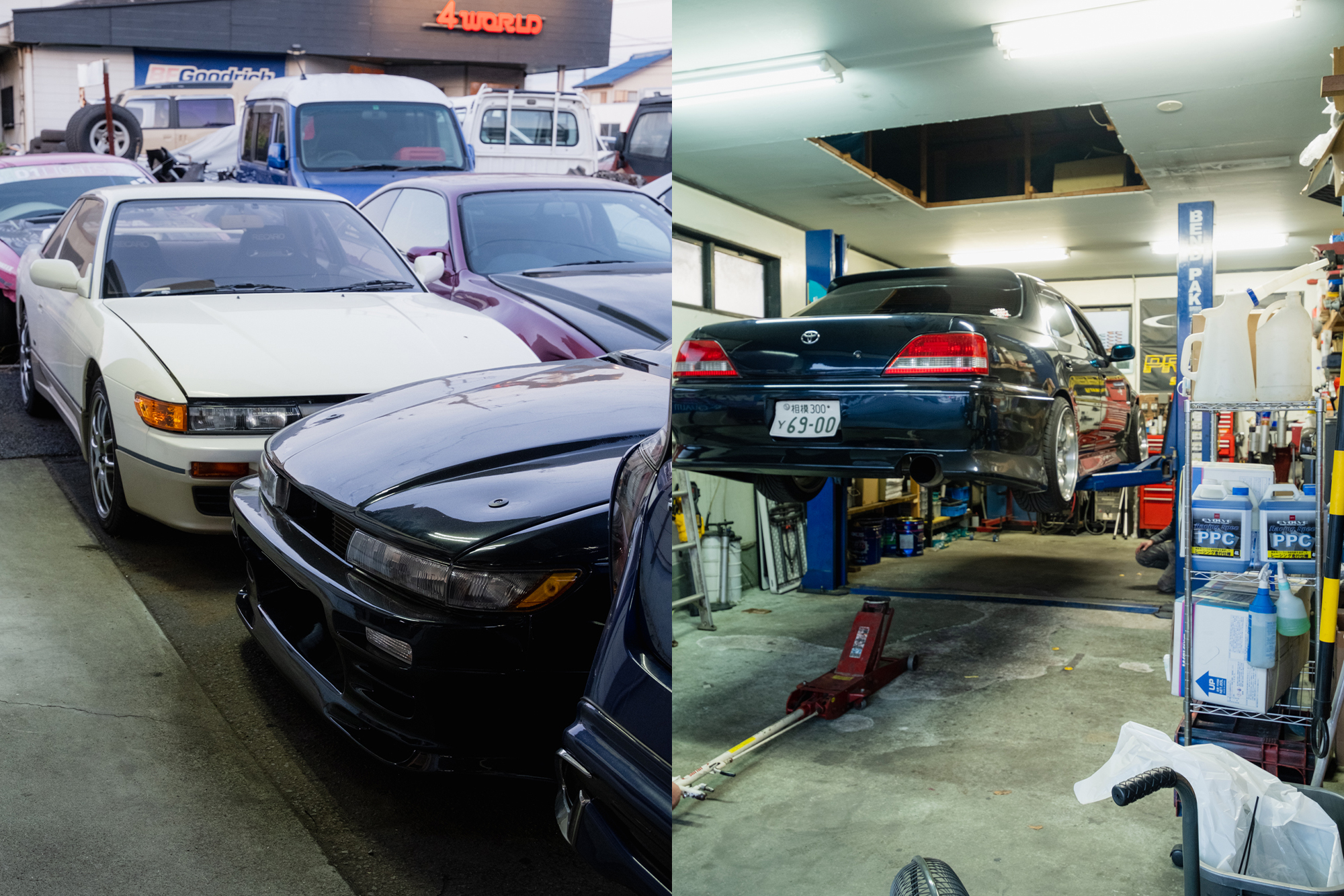 Hanging out legendary workshop Julius in Yokohama with Jeff and his JZX100 Cresta!