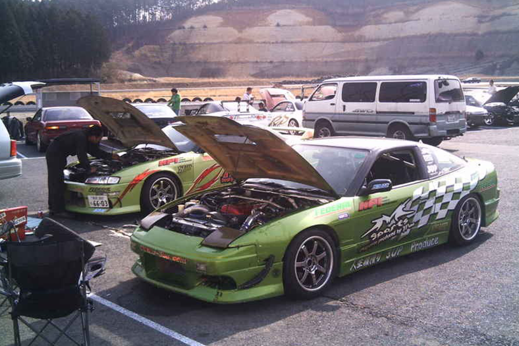 Whenever I arrive in Japan, my first stop is to catch up with Daikichi, stock up at a conbini, and visit his father, Mikami-san, at 3UP—a legendary tuning shop in Saitama specializing in S-chassis and SR20s. Mikami-san is a true icon, having competed in D1GP and D1SL in the 2000s, driving a 180SX, S14, and R33 in their signature green shades. The original dark green came from a Honda NSX, later transitioning to a brighter Kawasaki green, both worn by iconic 3UP builds.