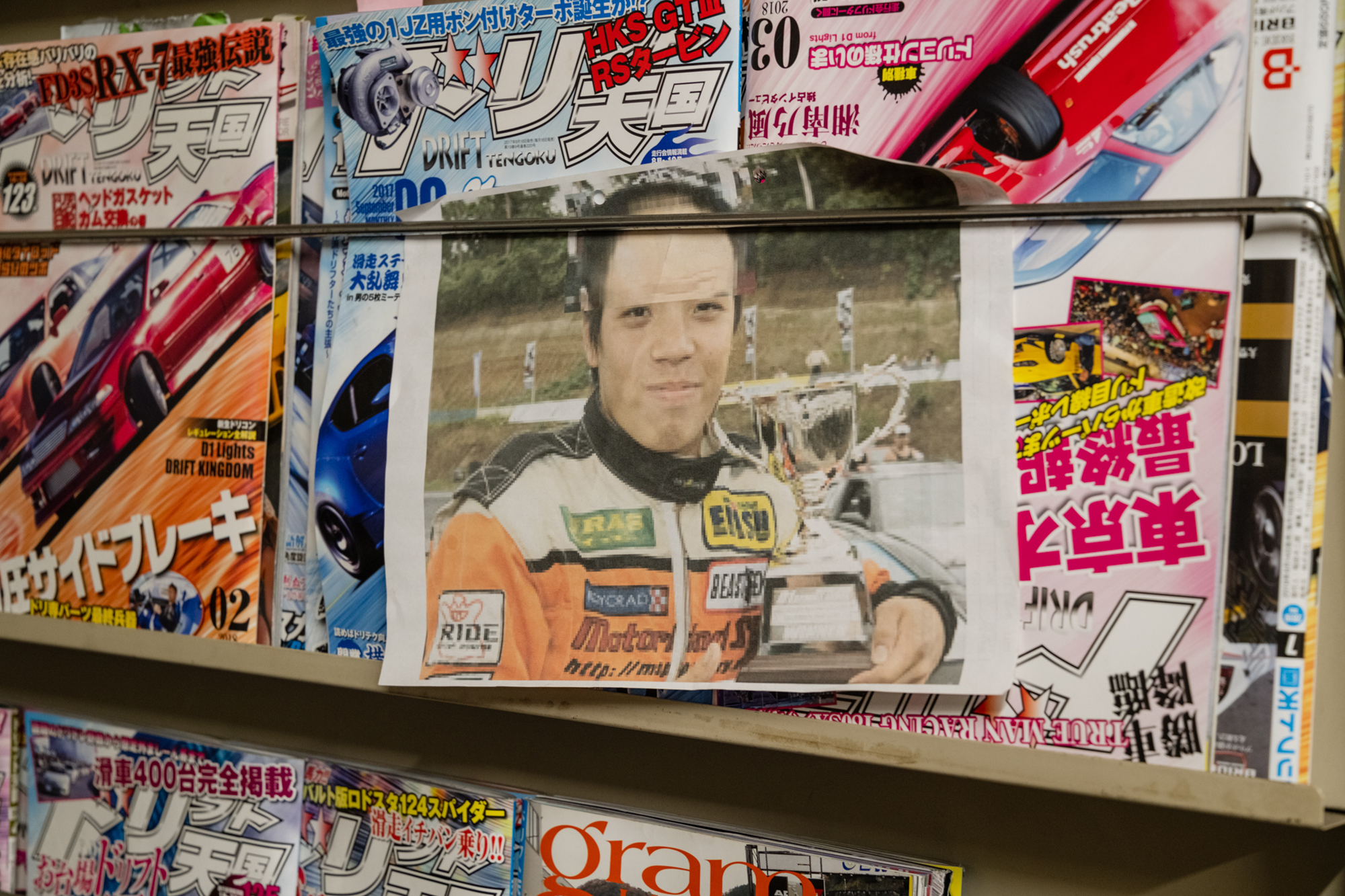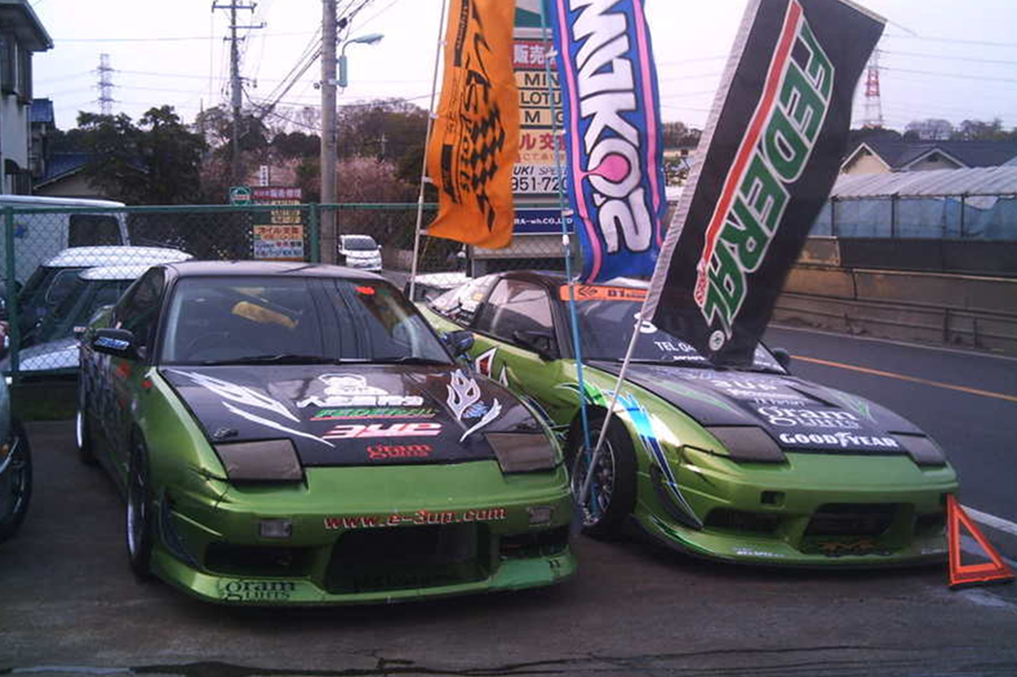 Despite the language barrier, Mikami-san and I manage to talk for hours with a mix of broken English, Japanese, and Google Translate. His office is an incredible mix of organized chaos, filled with rare parts and memorabilia. One topic we dove into was Kaneko-san’s airbrushed green-and-flames 180SX, a car that carried 3UP stickers and was built in nearby Shiki City. Kaneko-san ran Hanatomidori, a brand that created a legendary 180SX front bumper used by early D1 and BM cars. These days, he’s running a flower business—still on theme.