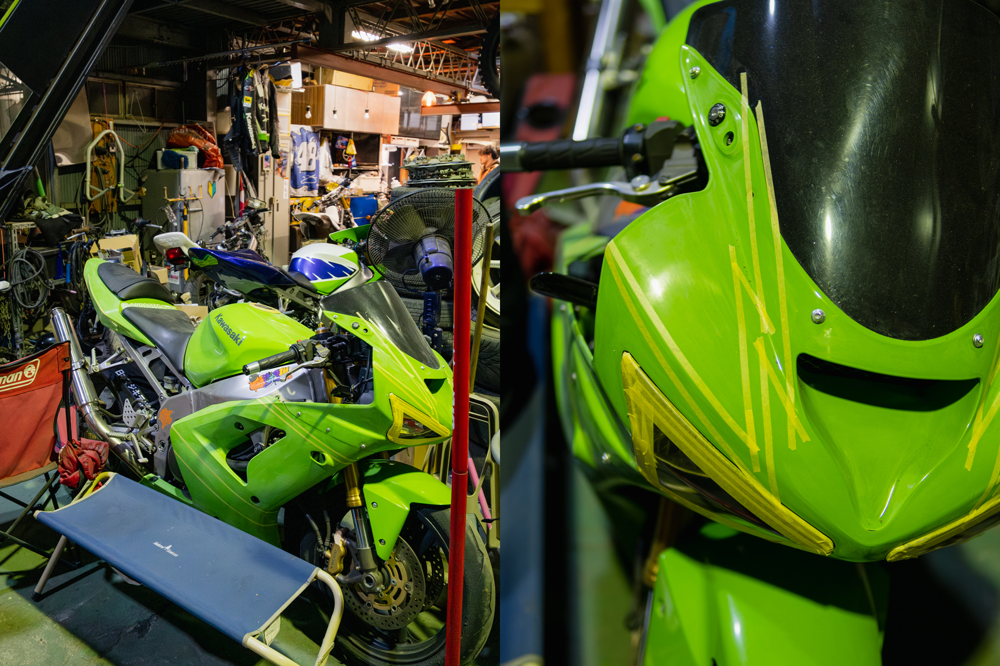 As we talked and he showed me around his work area, it was clear he’s heavily influenced by American culture, the road bike scene, Jordans, airbrush styles, and memorabilia. I’ve always loved the way people in Japan fully immerse themselves in something and truly live the lifestyle.
