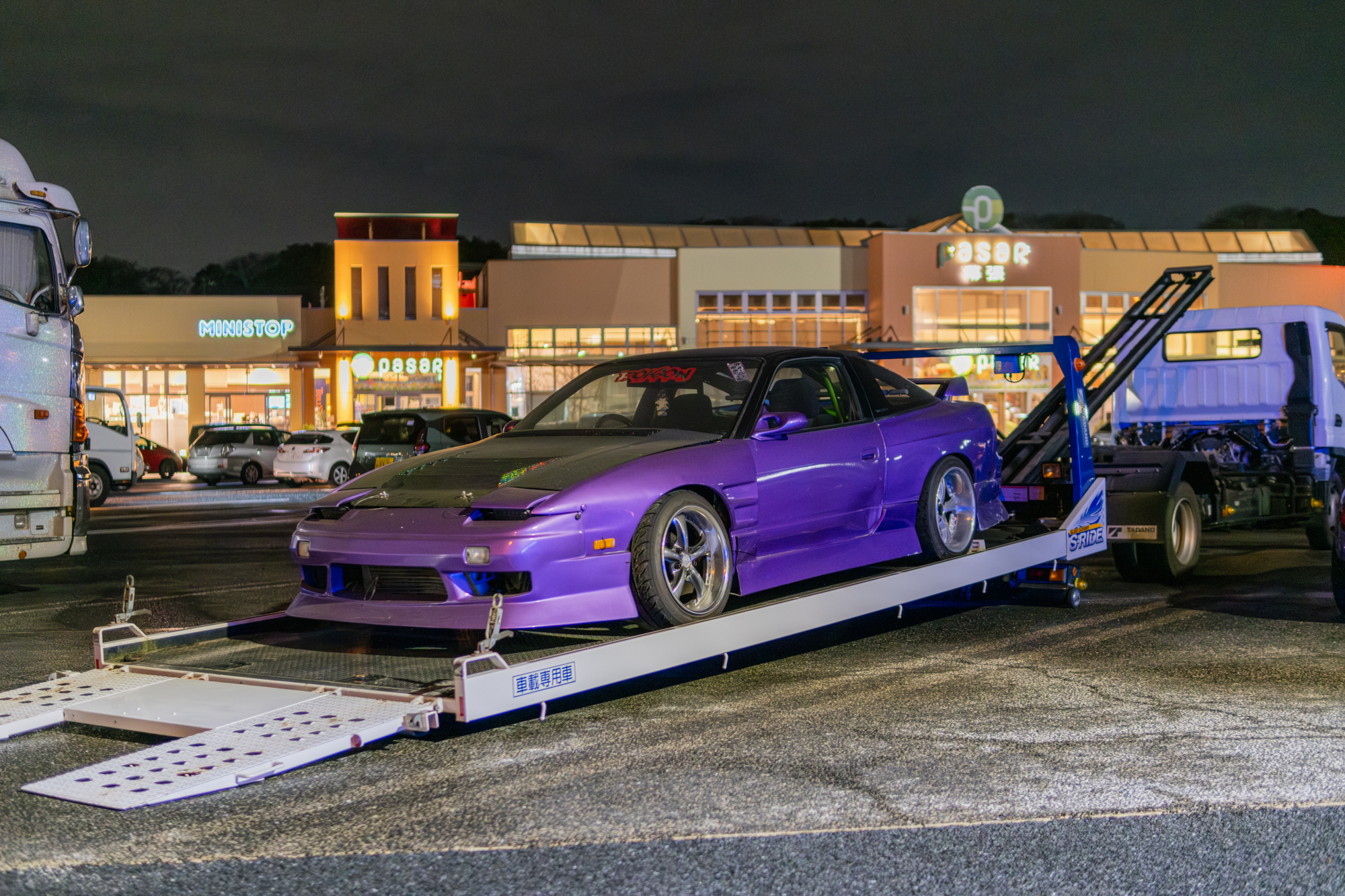 The Poison drift team even pulled up with Kakeru’s 180SX loaded on the back of their truck. Showing up to a meet with your car on a loader has to be the ultimate flex.