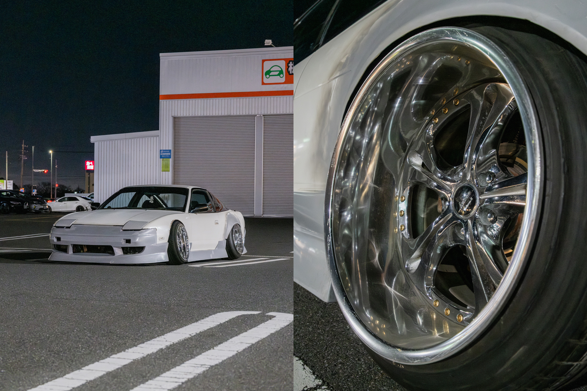 While in Japan I had the chance to link up and shoot Fumi’s incredibly cool 180SX, a work in progress that already has serious presence. He hand-crafted the ultra-wide moulded rear fenders himself, and just weeks later had the front done too (which I would’ve loved to shoot). But there’s something special about capturing a car mid-build, and documenting it while it’s still a work in progress.