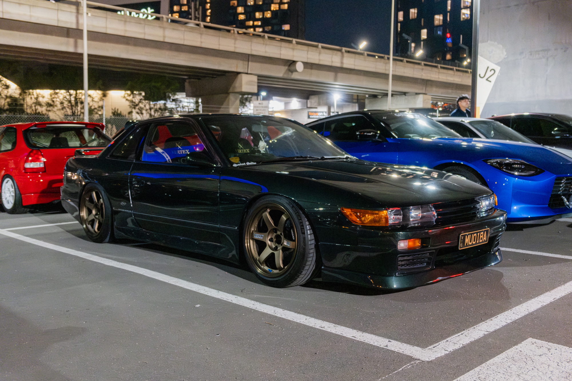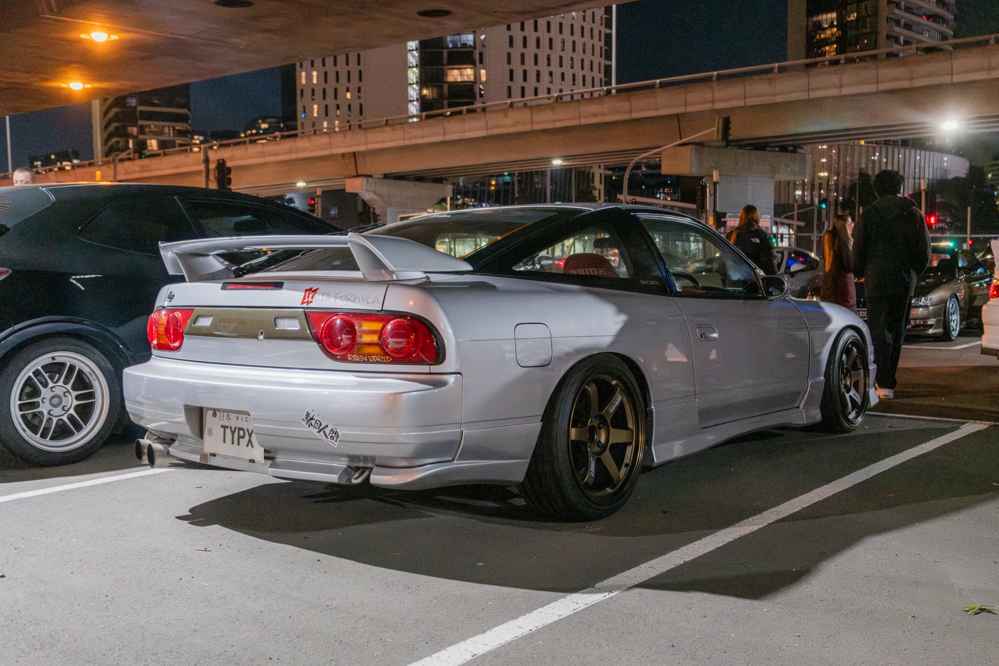 A couple of standouts for me were Jen’s R32 Skyline with that insane rainbow flake paint (if you know me, you know I’ve got a soft spot for glitter), and Merlz’s 180SX with all the details, including the Miracle X-bar setup.