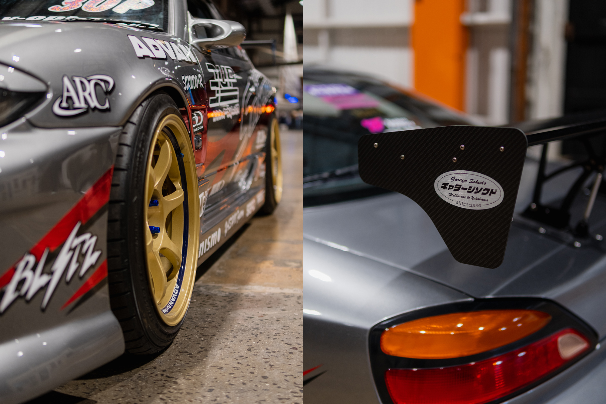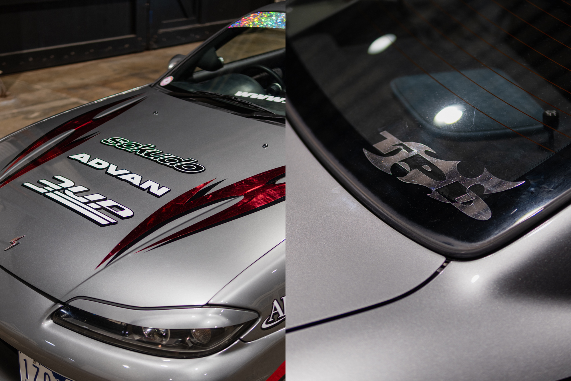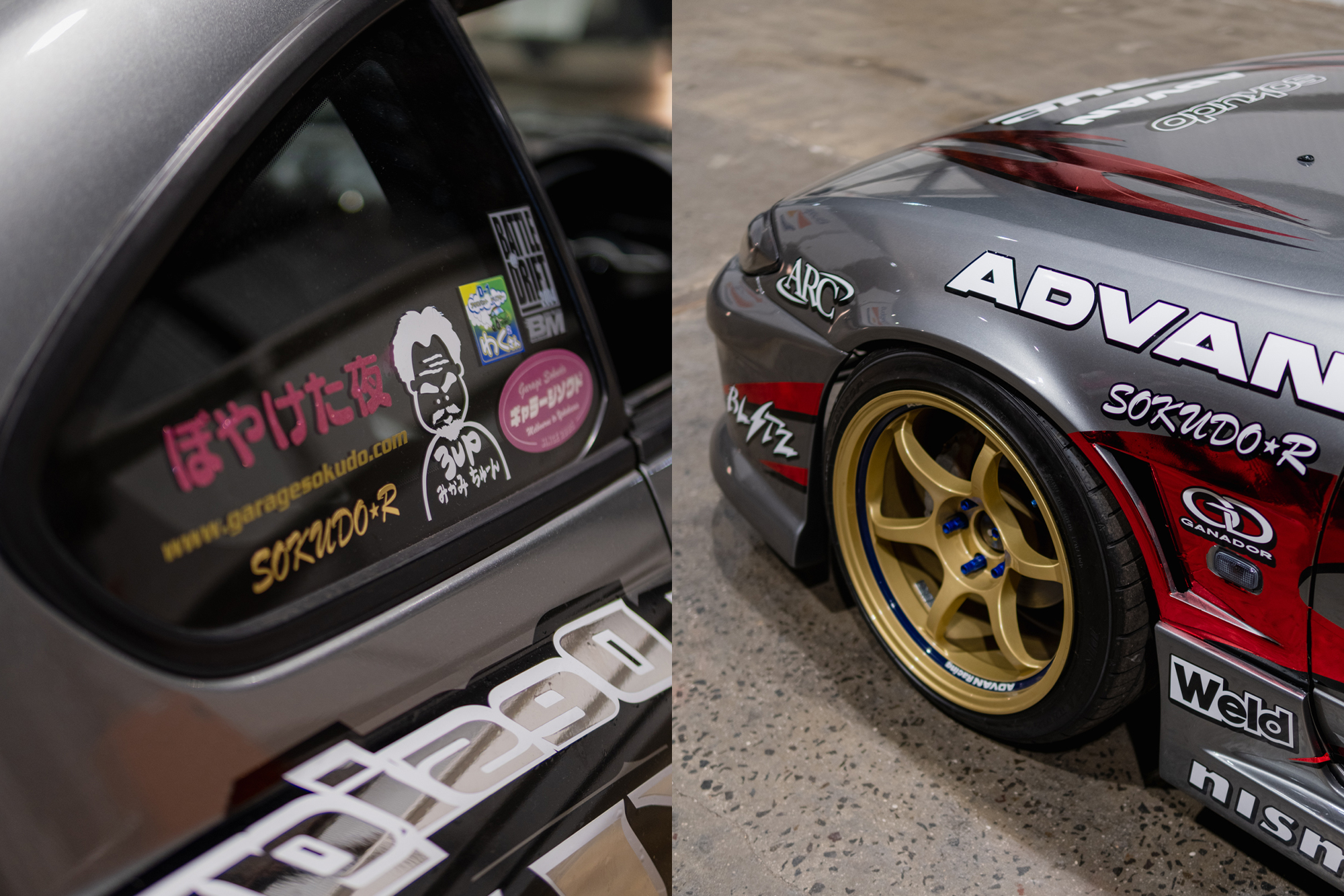 I finally managed to get some more detailed photos of the new V3 livery on the SK15SPL demo car. This livery pays homage to some of the great brands and workshops of the 2000s, many of whom I’m lucky enough to now call friends. The design itself is a completely custom tribal base in red chrome with an offset black layer behind it. The Car Design Shop Sokudo logo is a three-layer piece, starting with a black base, finished with a white outline and chrome lettering. The other logos use a black backing with white print, except for the 3UP logo, which we inverted to a black logo with a white outline so it stands out a little more, as a small thank you for everything Mikami-san and Daikichi do for me.