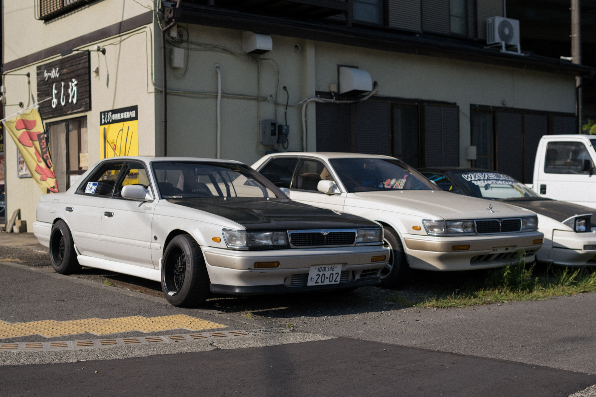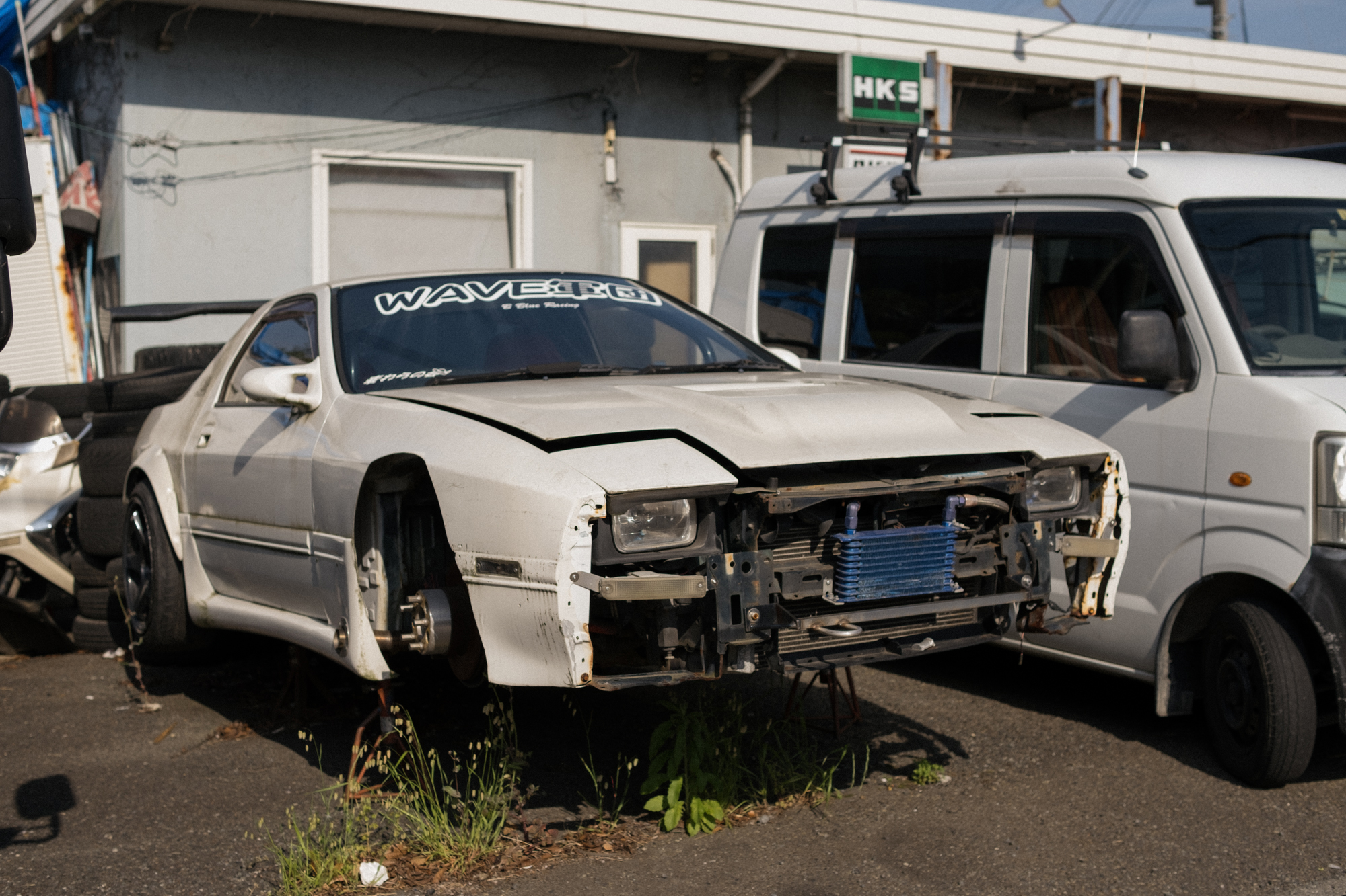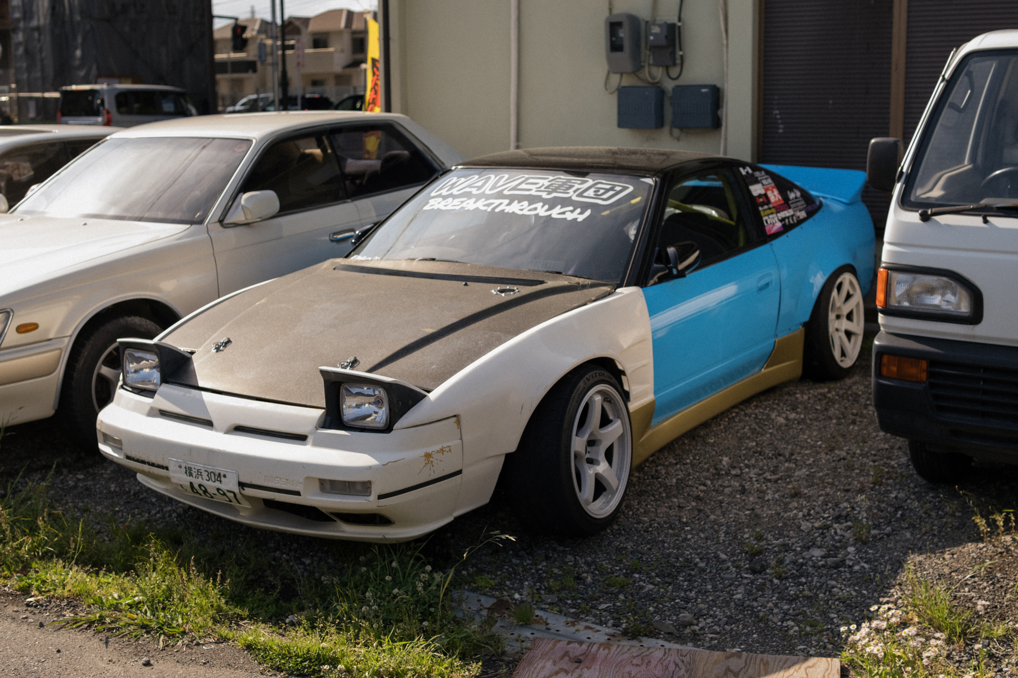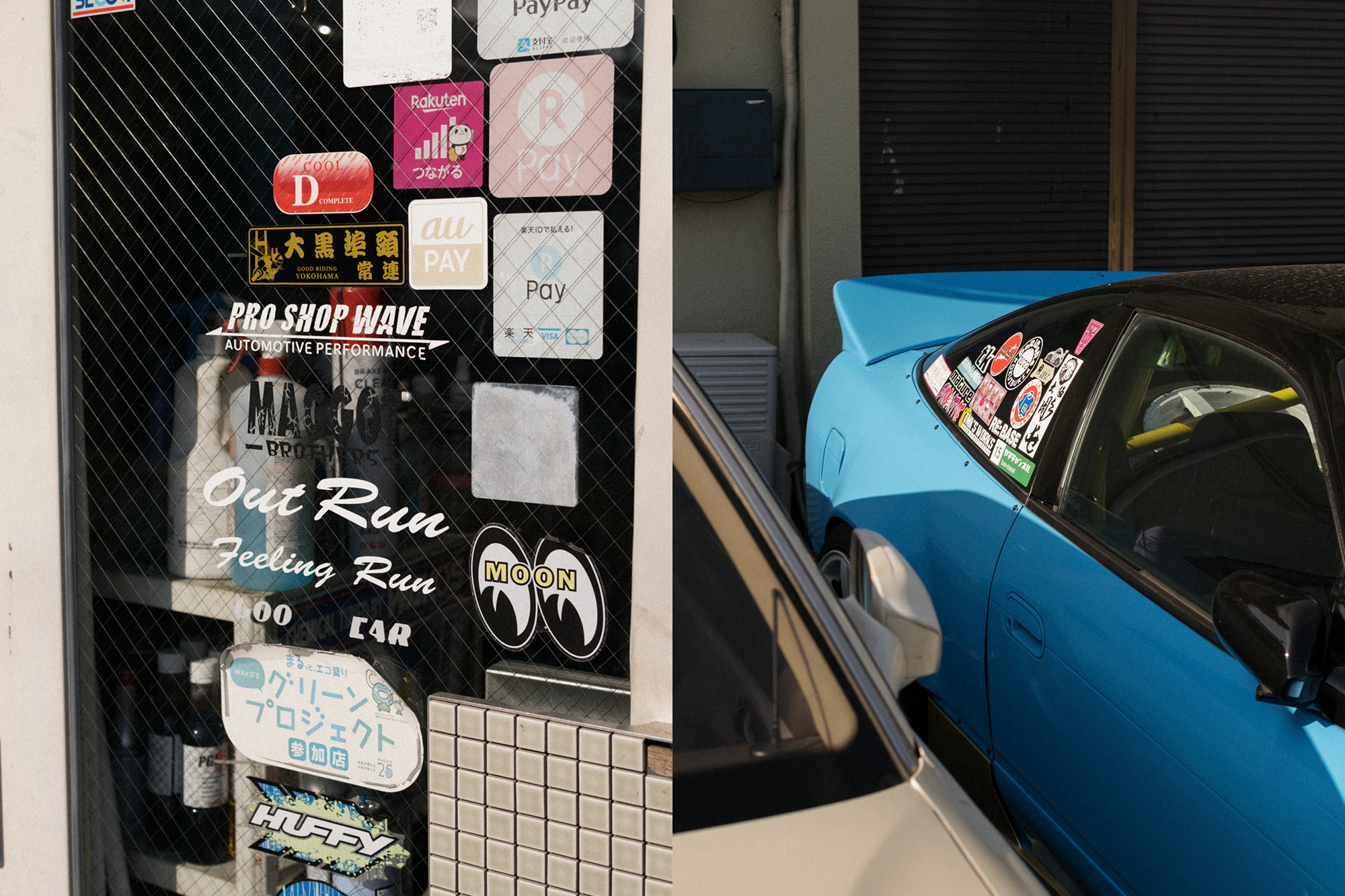 Back in 2023 while out in Kanagawa, I finally had the chance to visit the legendary shop, Pro Shop Wave. If you’ve ever browsed through old issues of Drift Tengoku from the 2000s, you’ve probably seen their ads, absolutely packed with tiny images of coilovers, LSDs, wings, and everything in between. The shop has been operating since 1992 and is run by Hasunuma-san, one of the original members of the OG drift team Night Walkers, alongside other Kanagawa-based drivers like Kuniaki-san of Kunnyz, Yuichiro-san that drove for Weld, and Hirota-san with his iconic maroon Verossa. Pro Shop Wave is also home to their original brand, B-Wave, known for 90s-style ducktail wings and aero kits, often featured on their brightly colored demo cars.