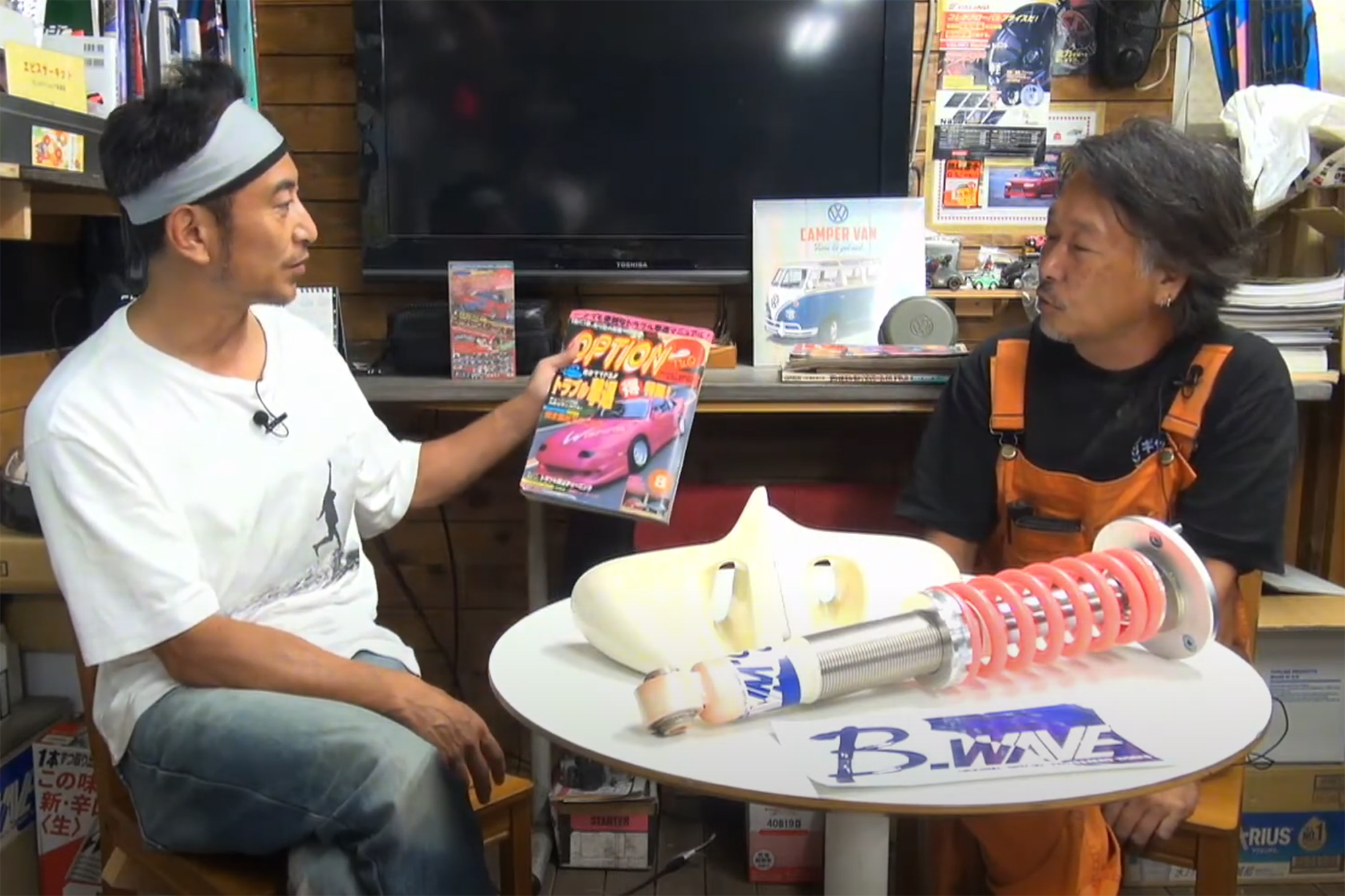 At the end of my visit, Hasunuma-san gifted me some original Pro Shop Wave and B-Wave stickers. In return, I gave him one of our original t-shirts, which he loved, and it was pretty cool to later spot him wearing it in a Video Option segment on YouTube, tucked under his trademark orange overalls. A nice little surprise months after the visit.