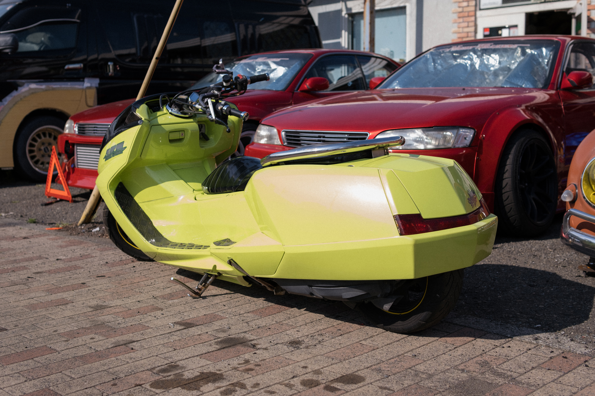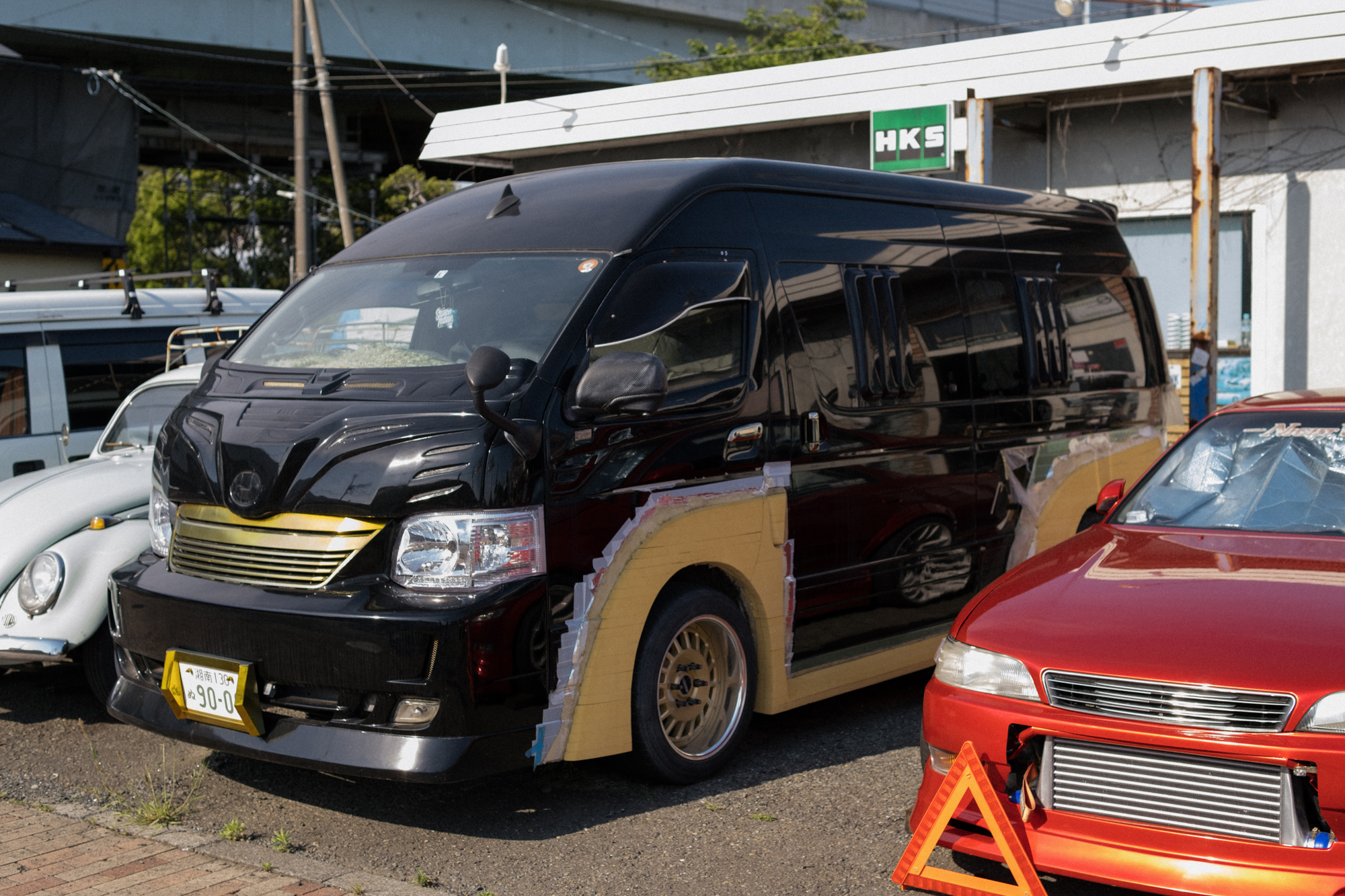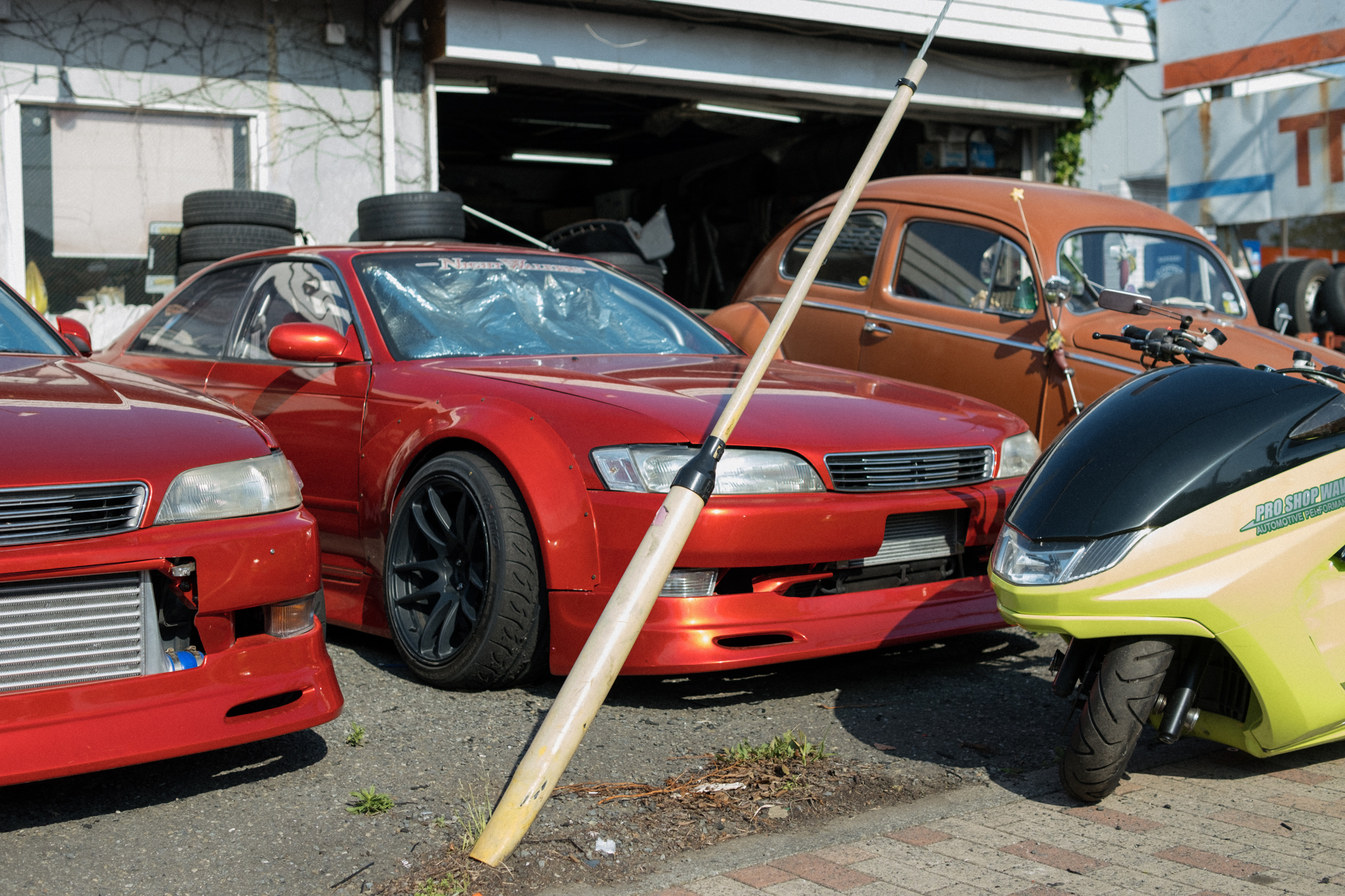 When I arrived, I was greeted by president Hasunuma-san, who was kind enough to give me a full tour of the shop. Out front were two stunning red JZX90 Mark IIs, of course wearing Night Walkers stickers, along with a mix of other cars and bikes, including a widebody Toyota HiAce that was a work in progress and an extremely low custom scooter. Wave isn’t just a parts shop; they also handle custom work and restorations for customers’ cars, from mild setups to full-on transformations. I love seeing grassroots shops like this still going strong after more than three decades, staying true to their original passion.