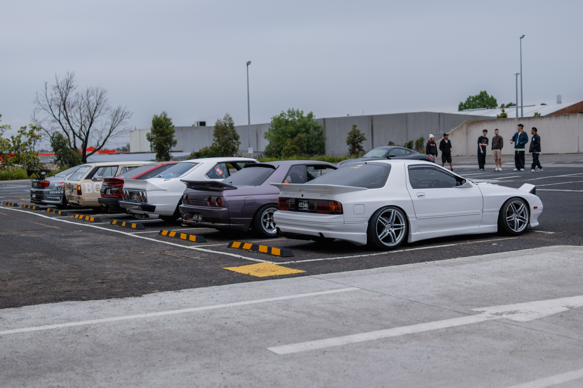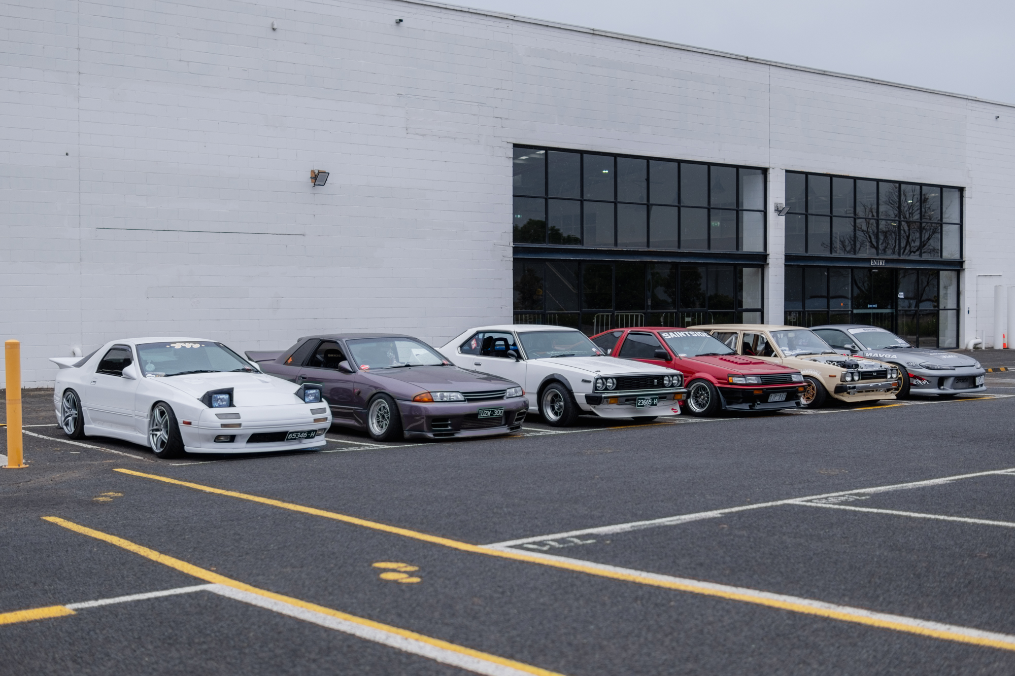 By midday, the carpark was packed. Hundreds of people came through from 12 to 6, checking out the cars, hanging out, and picking up merch. Our event-exclusive tees and stickers sold out, and we launched a few new designs and jackets on the day too.