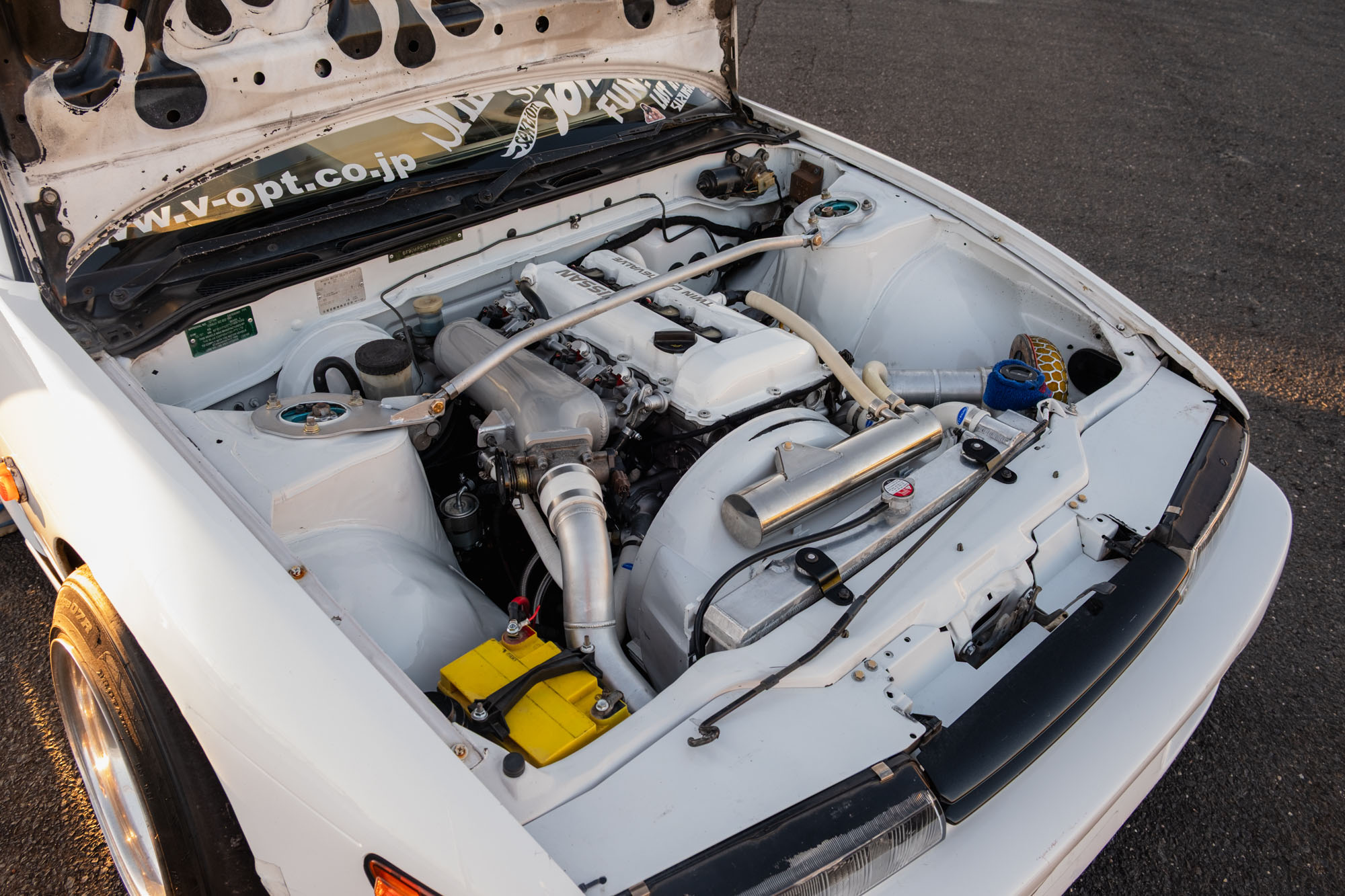 Despite the car’s unmistakable 1990s aesthetic, it’s been built with plenty of modern components to keep it reliable and functional. The SR20 features a handful of power upgrades, including a larger turbo and an aftermarket intake plenum, making it genuinely fun to drive. The engine bay also received a full white treatment, from the valve cover to the hoses and couplers. On paper it sounds like it could be over the top, but in reality it works perfectly.