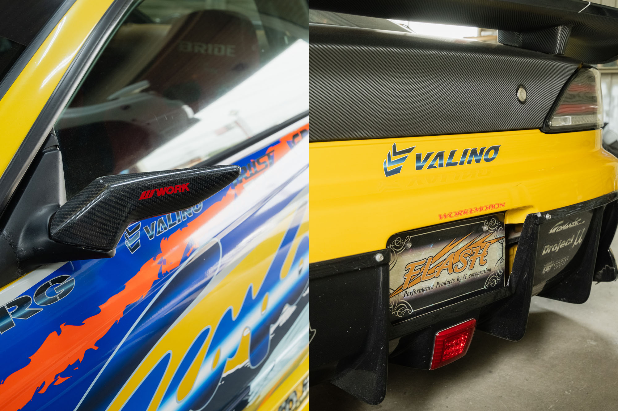 G-Corporation has always been loyal to Work Wheels, with many of their cars running across almost the entire Work catalogue. This S15 stays true to that history, wearing a set of Emotion ZR10s wrapped in Valino rubber. The car is finished in a yellow metallic paint and topped off with a bold printed livery that perfectly captures the loud, unmistakable G-Corp style. A fun detail is the driver sticker above the passenger door reading “Mee Nakamura”, which is actually named after Nakamura-san’s beloved cat.